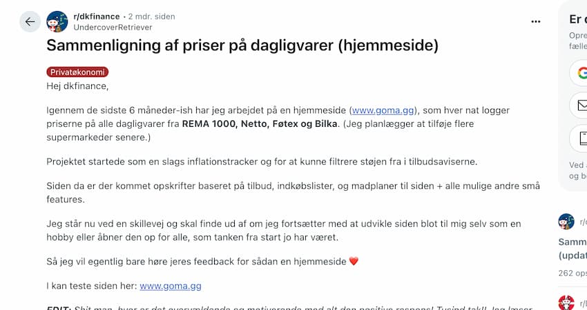 De stigende fødevarepriser fylder meget i danskernes hverdag – og nu har en Reddit-bruger taget sagen i egen hånd. Under